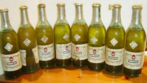 Une bouteille scellée d'absinthe Pernod Fils, environs 1910, et deux bouteilles d'absinthe Edouard Pernod, avec leur contenu original intact. Elle furent trouvées dans une cache récemment découverte dans une section emmurée et oubliée du grenier d'une auberge, où personne ne les avait dérangées pendant plus de 90 années.